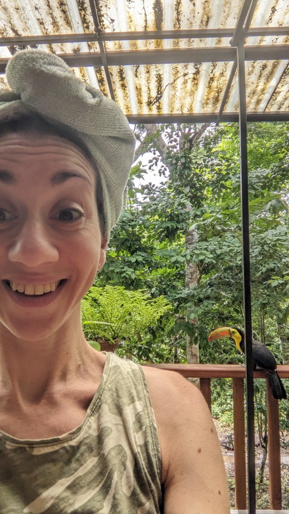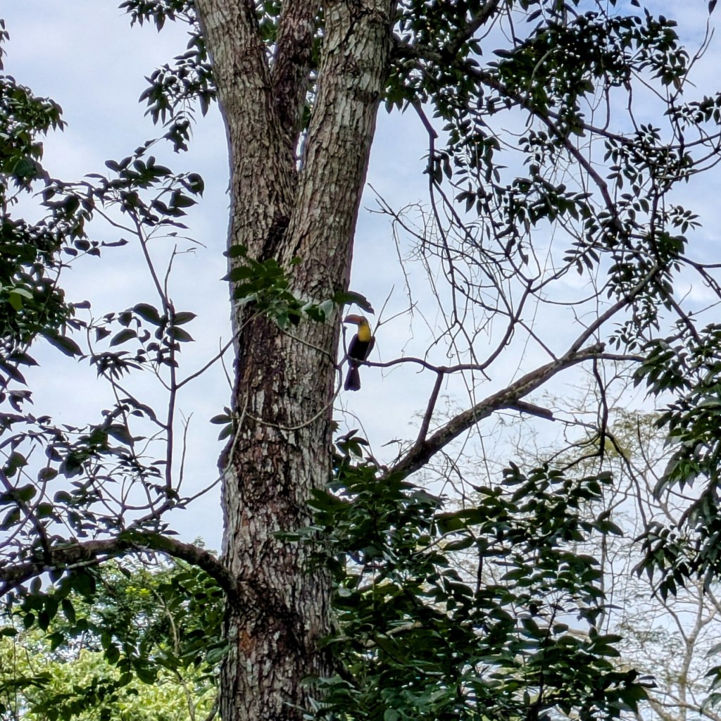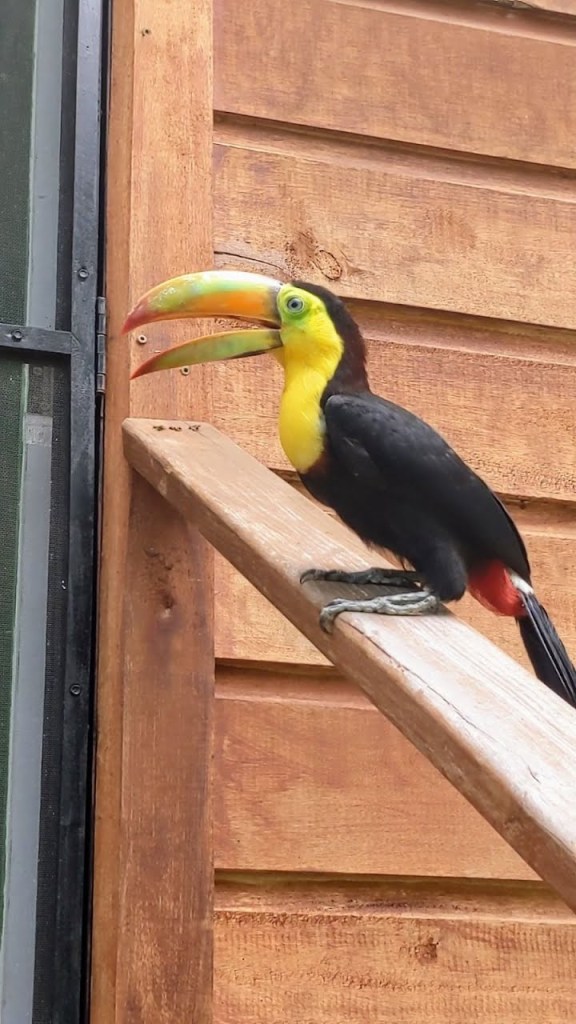 If you guessed that we were excited at our new friend’s arrival, you would be correct. Jordana, always prepared, was busy lining up incredible bird photos and some fantastic video of this little dude up close and in person. We’ve definitely had plenty of Keel-bills on the property, but they tend to be much higher up in trees and never so close to the house. To see one literally a few feet away- close enough to touch if we had been motivated- was not what we expected on a lazy Saturday morning. It put quite the spring in everyone’s step!
