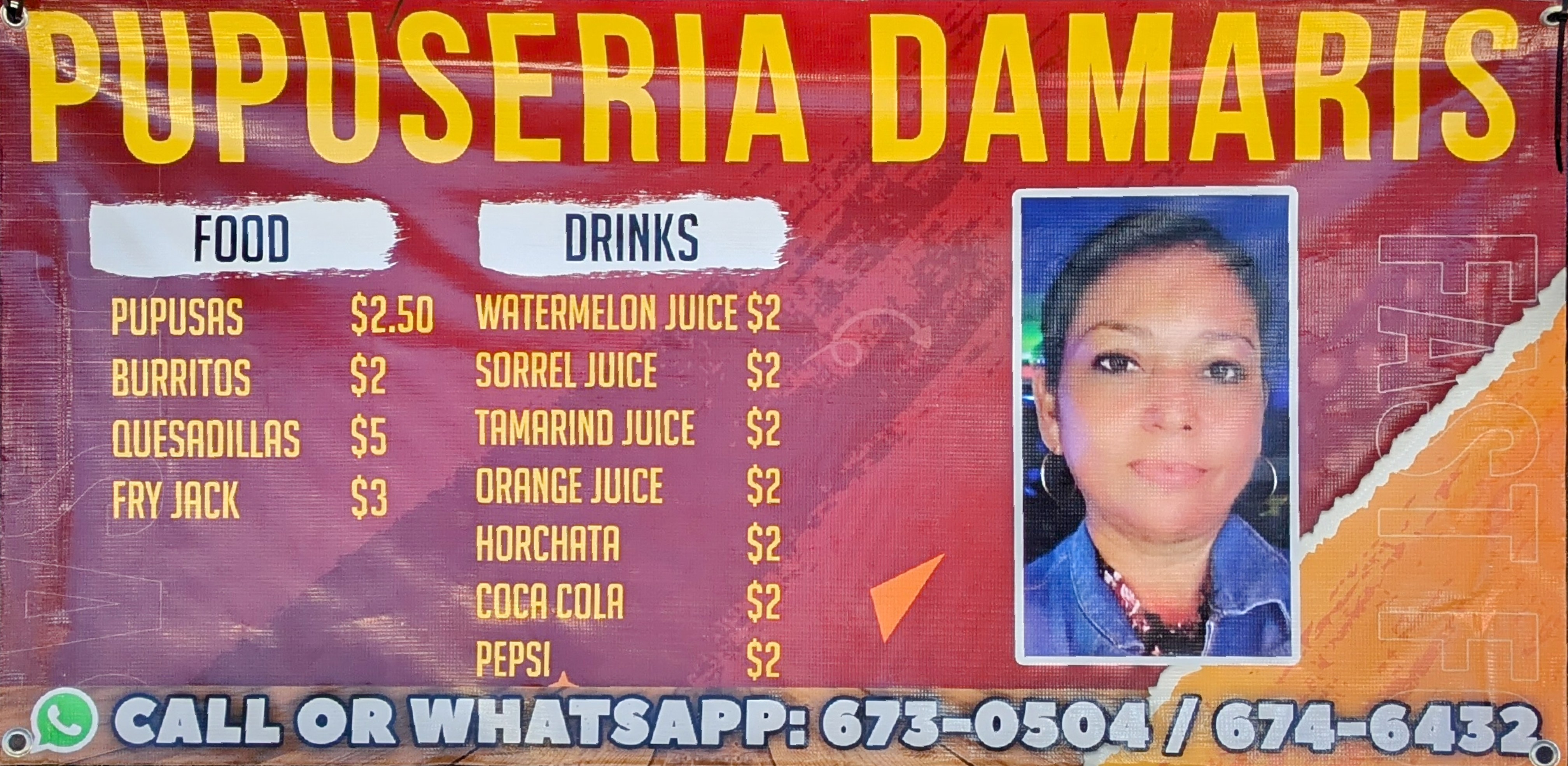 Pupuseria Damaris is located in the San Ignacio Market, and open every day but Sunday, from early to just after lunch. Expect a line on the weekend! Walk into the market from the street and head past the main row of fruit vendors to a long tarped structure full of small kitchens and picnic tables in the next row. Look for the menu posted above, which will be inside, under the roof. If you find a row of clothing vendors, you’ve gone too far.