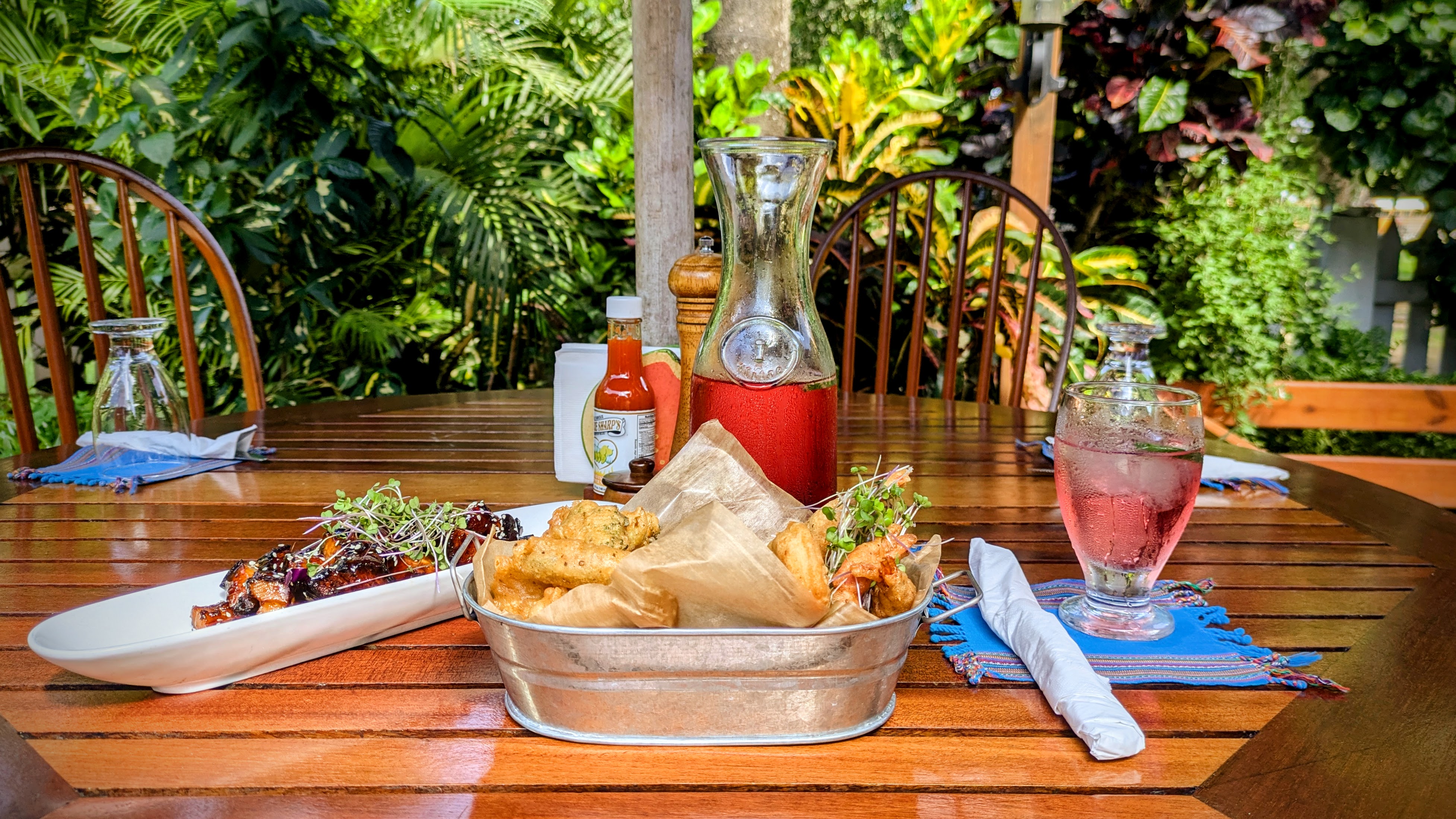 Guava Limb is a true farm-to-table experience; the freshness is the entire point. It would be a shame to have such beautiful food sit in the sun for half an hour while I wander around taking pictures. But that’s never a problem for customers, whose orders seem to disappear immediately. “Right now, Mr. Cash.” Gilbert picks up the phone at the host stand and calls what I presume is the kitchen, speaking in rapid Spanish and naming some of the dishes I’m supposed to shoot. He hangs up the phone and looks at me. “Would you like your martini while you wait?” As much as I absolutely want my martini, discretion is the better part of valor, so I must decline. We need photos in focus. “I better not, Gilbert. Somebody has to be responsible around here.” I look around me at the tables and the guests who occupy them. Every single one of them looks happy.