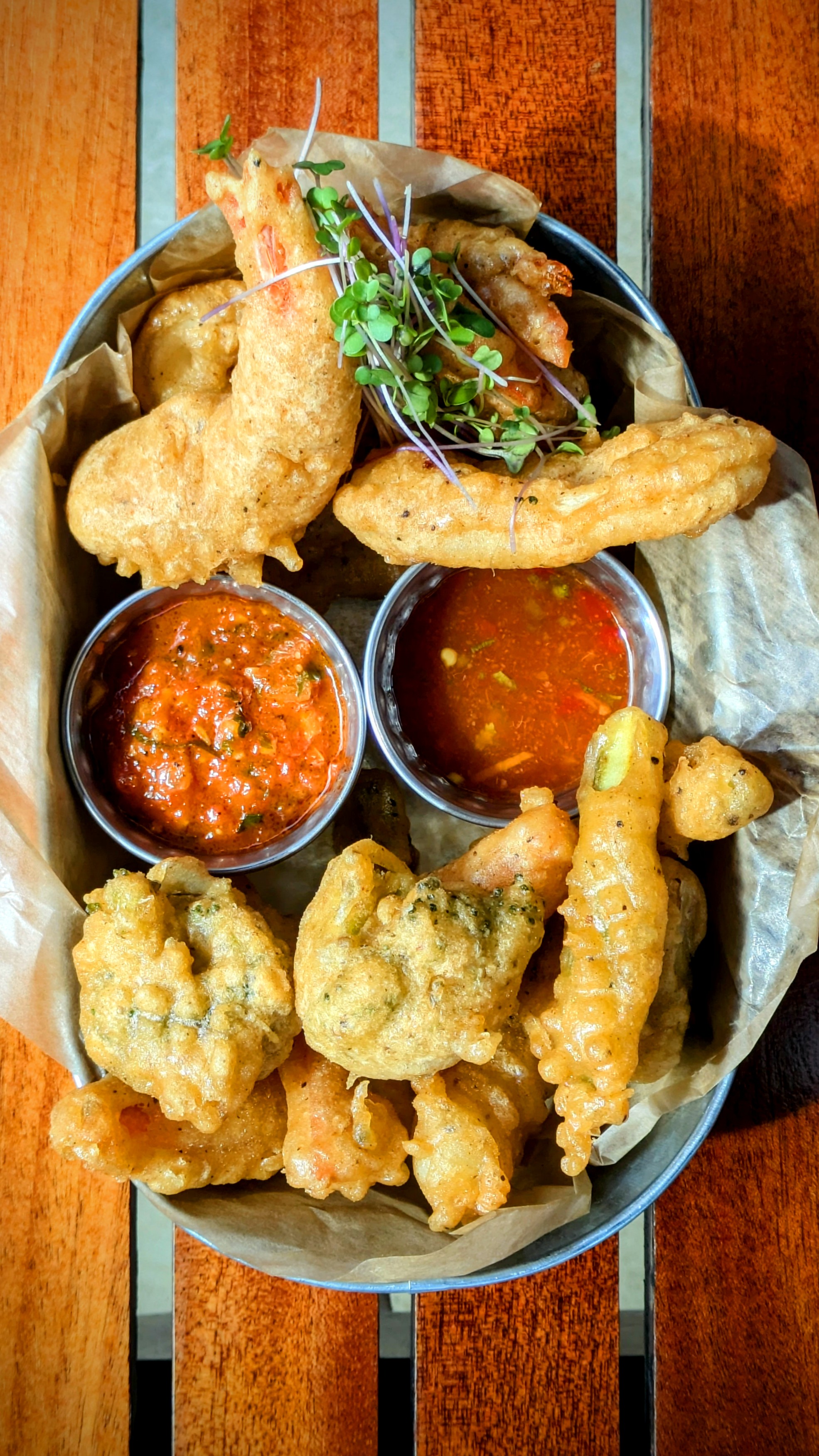 shrimp, calamari & veggies in tempura batter with Asian sweet chili sauce & marinara