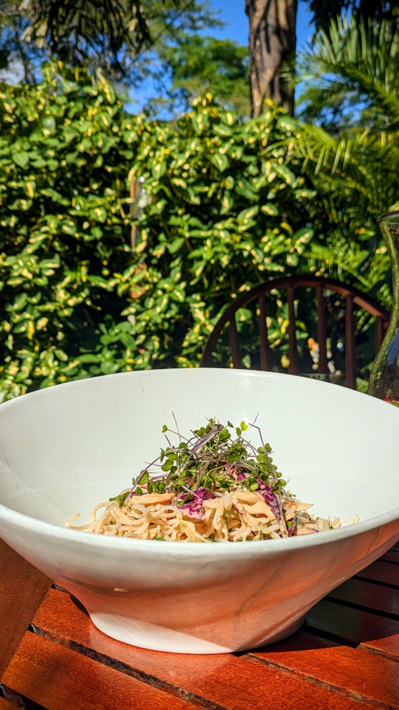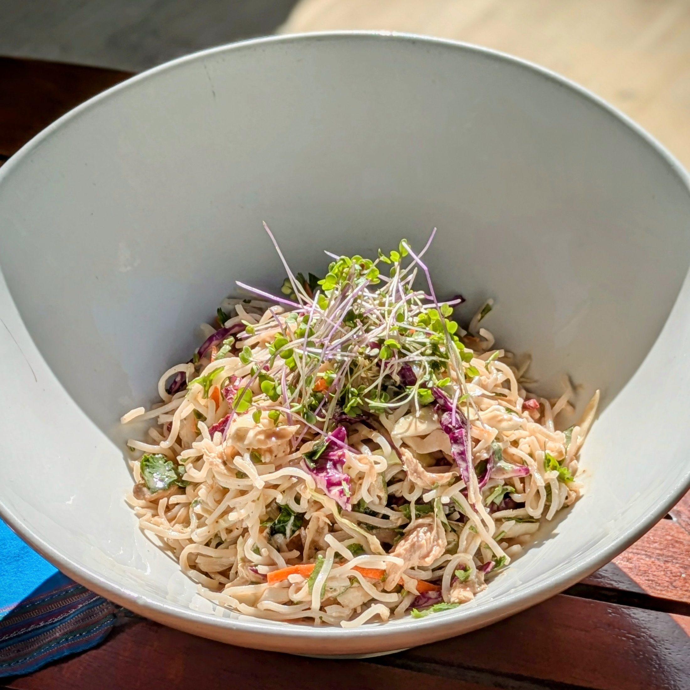 Viet-style rice noodles in fragrant peanut & coconut sauce with chicken & veggies