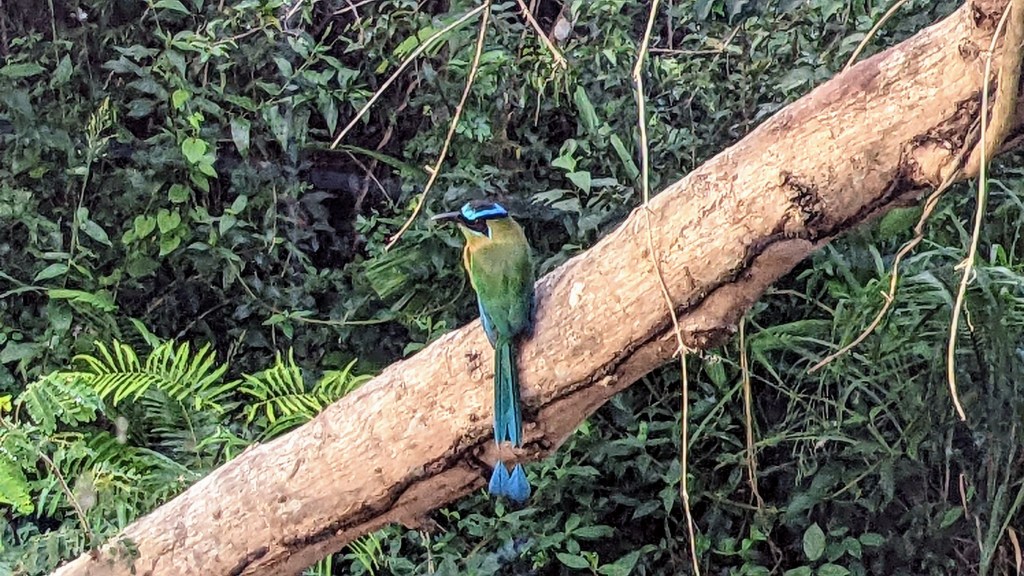 I started my day early with a birding tour only a five minute walk from my villa. My guide was an outgoing young woman named Seleni. With equal parts knowledge and keen eyesight, she helped our group spot dozens of bird species without ever leaving the center of the property. By letting the existing landscape inform their design, Chaa Creek ensured that the Toucans, Motmots, Kites, Tityras, and so many other birds were right over top of us in the middle of the resort, much to the delight of the group. Seleni could mimic bird calls and coax the birds to us, too. Within a few minutes, she called a Motmot, which landed overhead in the branches of the trees dotting the resort.